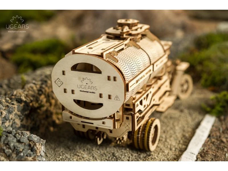 Der Tanklastwagen besitzt einen 4-Zylinder-Motor, welcher über eine Kardanwelle und Zahnräder durch einen Gummimotor angetrieben wird. Das Modell fährt vorwärts, rückwärts und lässt sich auch in den «Leerlauf» schalten, um die bewegenden Kolben zu betrachten.
